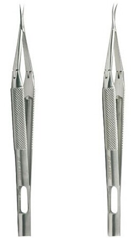 我們這里主要介紹常用的兩類產品:顯微鑷子(micro forceps)和顯微剪刀(micro scissors)。由于有些工作者喜歡拿手頭既用的工具來市場上購買,特此說明:現在市場上流通的金鐘顯微器械,基本有兩個版本,即04版本和09版本,版本不同,剪刀外形上有所變動,貨號也不同,但是剪刀的功能并沒有隨著改變。