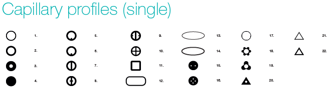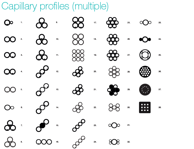 原產(chǎn)德國的多孔道毛細(xì)管,分為兩大類別,單管多孔道(single)和多管排列多孔道(multiple)。常見的圓形內(nèi)的多孔道排列,給出完美的幾何對稱,例如θ玻璃毛細(xì)管,這種對稱是毛細(xì)管中層流的產(chǎn)生所必需的,同時也能限制流動。