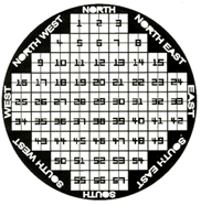 Type SEMF1:參考環(huán)形邊緣識(shí)別東西南北。四個(gè)象限標(biāo)記朝向中心逐漸變細(xì)。通過(guò)參考四個(gè)象限中的環(huán)形邊緣數(shù)字和徑向字母來(lái)識(shí)別100個(gè)徑向扇區(qū)。