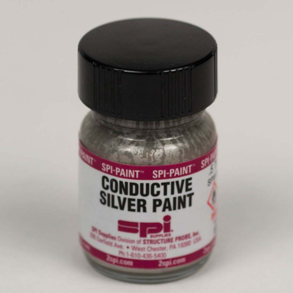 SPI #5001-AB是一種高度濃縮的懸浮液(銀固體含量為43% ±3%),由經(jīng)過(guò)特殊制備且嚴(yán)格控制的高純度銀粉與一種高效的有機(jī)懸浮和粘合體系結(jié)合而成。該產(chǎn)品配方旨在在非導(dǎo)電表面上形成電導(dǎo)路徑、圖案或薄膜。此外,該產(chǎn)品專為嚴(yán)格室溫空氣干燥應(yīng)用而設(shè)計(jì),因?yàn)榇蠖鄶?shù)用于掃描電子顯微鏡(SEM)安裝的樣品無(wú)法承受更高的溫度。該產(chǎn)品具有足夠的多功能性,也可以在較高溫度下干燥,特別是對(duì)于那些在超高真空(UHV)系統(tǒng)中使用該產(chǎn)品的人。在大多數(shù)情況下,基底成分決定了干燥(固化)溫度的可能性范圍。我們經(jīng)常被問(wèn)及干燥“速率”。當(dāng)然,真正的問(wèn)題是,在將樣品插入掃描電子顯微鏡的柱體和真空系統(tǒng)之前,需要等待多長(zhǎng)時(shí)間。就像許多其他事情一樣,這個(gè)問(wèn)題沒(méi)有明確的答案。干燥時(shí)間取決于溶劑體系、施用方法(由粘度決定)以及粘合劑與溶劑的比例。我們也經(jīng)常被問(wèn)及該產(chǎn)品是否適用于各種類型的表面。它可以應(yīng)用于各種有機(jī)和無(wú)機(jī)基底,主要用于“涂覆”銀導(dǎo)電線路,作為表面電極。此外,該產(chǎn)品還適用于刷涂或自動(dòng)粘接應(yīng)用,也可以稀釋后用于噴涂。除了掃描電子顯微鏡實(shí)驗(yàn)室外,一些典型的應(yīng)用還包括印刷電路板修復(fù)、屏蔽涂料、鍍層底漆和電容器電極成型。