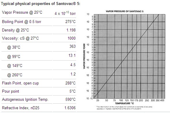 Santovac 5真空油為聚甲基丙烯酸脂醚,適用于電子顯微鏡和氣相色普-質(zhì)樸(GC-MS)領(lǐng)域。性能穩(wěn)定,不易被氧化。Santovac 5真空油具有極低的蒸汽壓,可以使泵得到接近極限的真空度;適合擴(kuò)散泵,不需要任何類型的液氮冷阱。