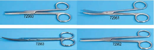 又稱組織剪,或者梅氏剪。組織解剖剪刀薄、銳利,有直彎兩型,大小長(zhǎng)短不一,主要用于分離、解剖和剪開組織,通常淺部操作用直解剖剪,深部操作一般使用中號(hào)或長(zhǎng)號(hào)彎解剖剪。