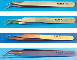 EMS鑷子進入中國市場十年來,逐漸得到了實驗室科研工作者的接納和認可,并獲得了不少贊譽。EMS 鑷子瑞士制造,材料選擇無磁性、抗酸蝕不銹鋼(特別材質(zhì)除外),防炫目的緞面設(shè)計,高品質(zhì)和革新是EMS鑷子的一直追求!對于電鏡工作者,EMS公司特別推薦style 3,style 3c,style 4,style 5,style 51s,style 5b,均可以用于電鏡微柵的精確取放。