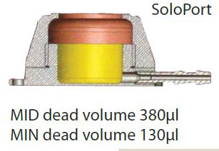 五、LoVol:鈦合金材料,非常低的死區(qū)容積,適用特別珍貴的藥品和收集小量體液,例如CSF INFUSION使用。LoVol port有兩種尺寸:MIN-LoVol(15μl)和MID-LoVol(40μl)配套使用22G 和24G針和輸液套件。通過(guò)下圖的比對(duì),可以很快明白LoVol設(shè)計(jì)的奧妙!