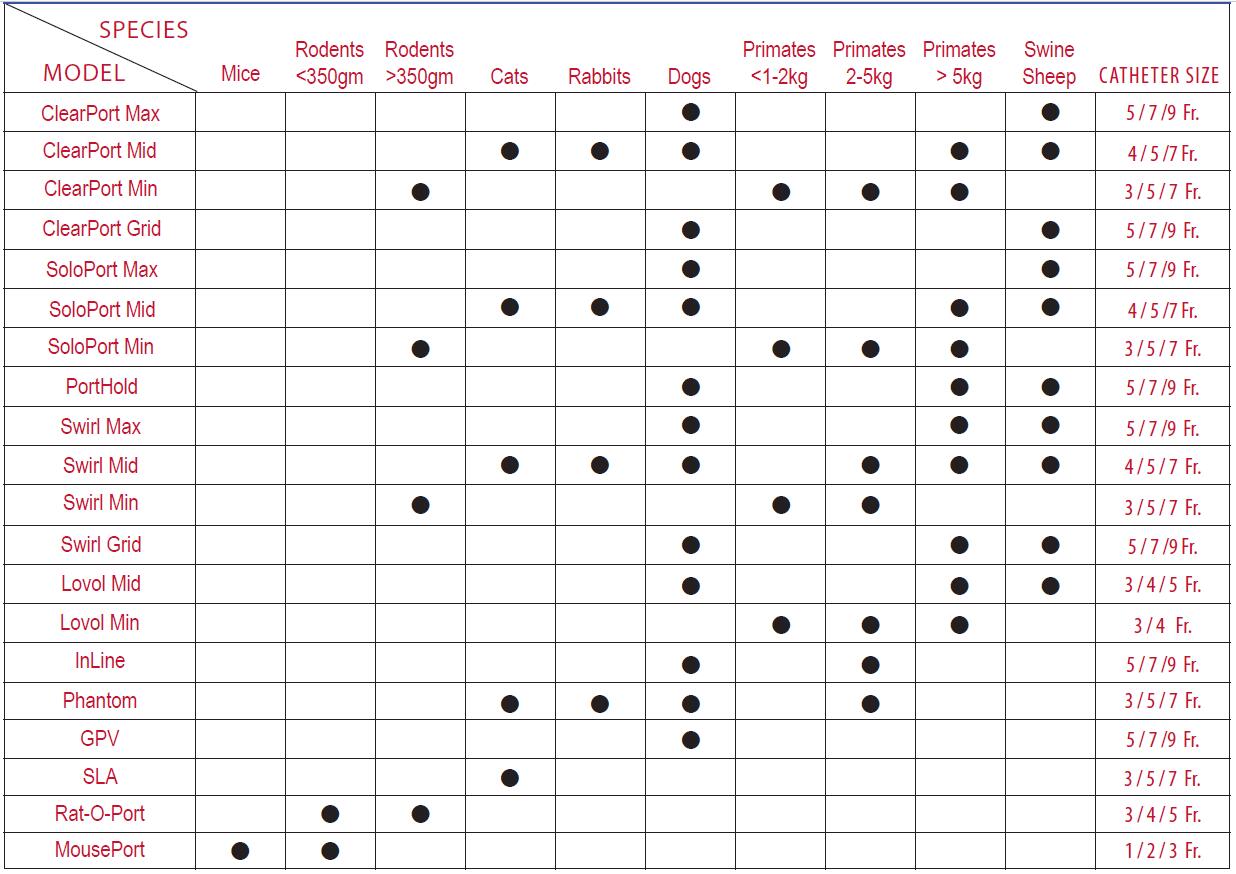 大小鼠用輸液港主要指適用范圍小于350g的鼠類(小鼠和大鼠)。對(duì)那些大于350g的大鼠、以及狗、貓、猴子等等,請(qǐng)選擇以下的注射座!產(chǎn)品一般是成套的,包含注射座和導(dǎo)管兩部分組成,往往會(huì)隨貨贈(zèng)送一個(gè)針頭。具體的選擇可以參考下表以及產(chǎn)品的具體說(shuō)明!