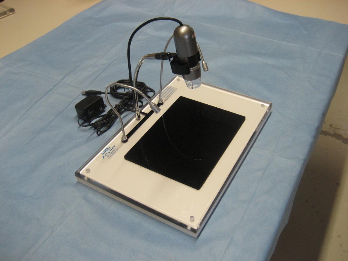 手術(shù)臺上同時配套的其他設備:兩個LED燈,提供無影照明。放大鏡(主鏡頭2.3x,內(nèi)嵌鏡頭4.0x)輔助視野。