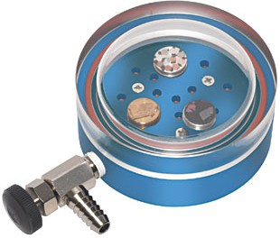 理想的運(yùn)輸或保存SEM、TEM、FIB、AFM樣本的微型干燥器,可以保存12個標(biāo)準(zhǔn)的ø 12.7mm樣本臺或者2個ø 25mm或1個ø 50mm的樣本臺,樣本高度不能超過10mm,保存狀態(tài)為真空。底座材料為陽極化處理過的鋁,蓋子為10mm厚度的透明工程塑料,便于觀察??傮w尺寸為ø76 x 35mm,美國制造。密封的O型圈可以適應(yīng)10-3 mbar的真空,且保持?jǐn)?shù)月之久。