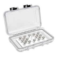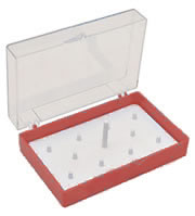 1.通用型儲存盒:盒子帶有內(nèi)襯和蓋子,可裝12個樣品臺(臺面直徑是10mm或者15mm的圓柱體;或者銷釘?shù)闹睆绞?span lang="EN-US">3.1mm的樣品臺)。
